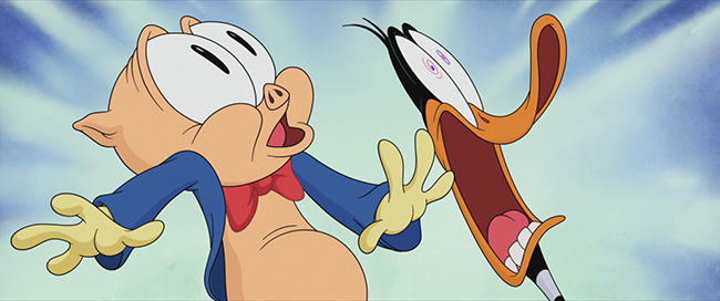 Director Peter Browngardt made numerous bold choices in this film, not the least of which was casting Eric Bauza to perform the voices of both Daffy Duck and Porky Pig, despite his obvious difficulty enunciating words. Candi Milo charms as the brilliant, resourceful Petunia Pig, and Peter MacNicol chills as the Invader. Careful ears may also notice cameo voice roles by Wayne Knight and Laraine Newman, as well as veteran voice talent Carlos Alazraqui and Fred Tatasciore.