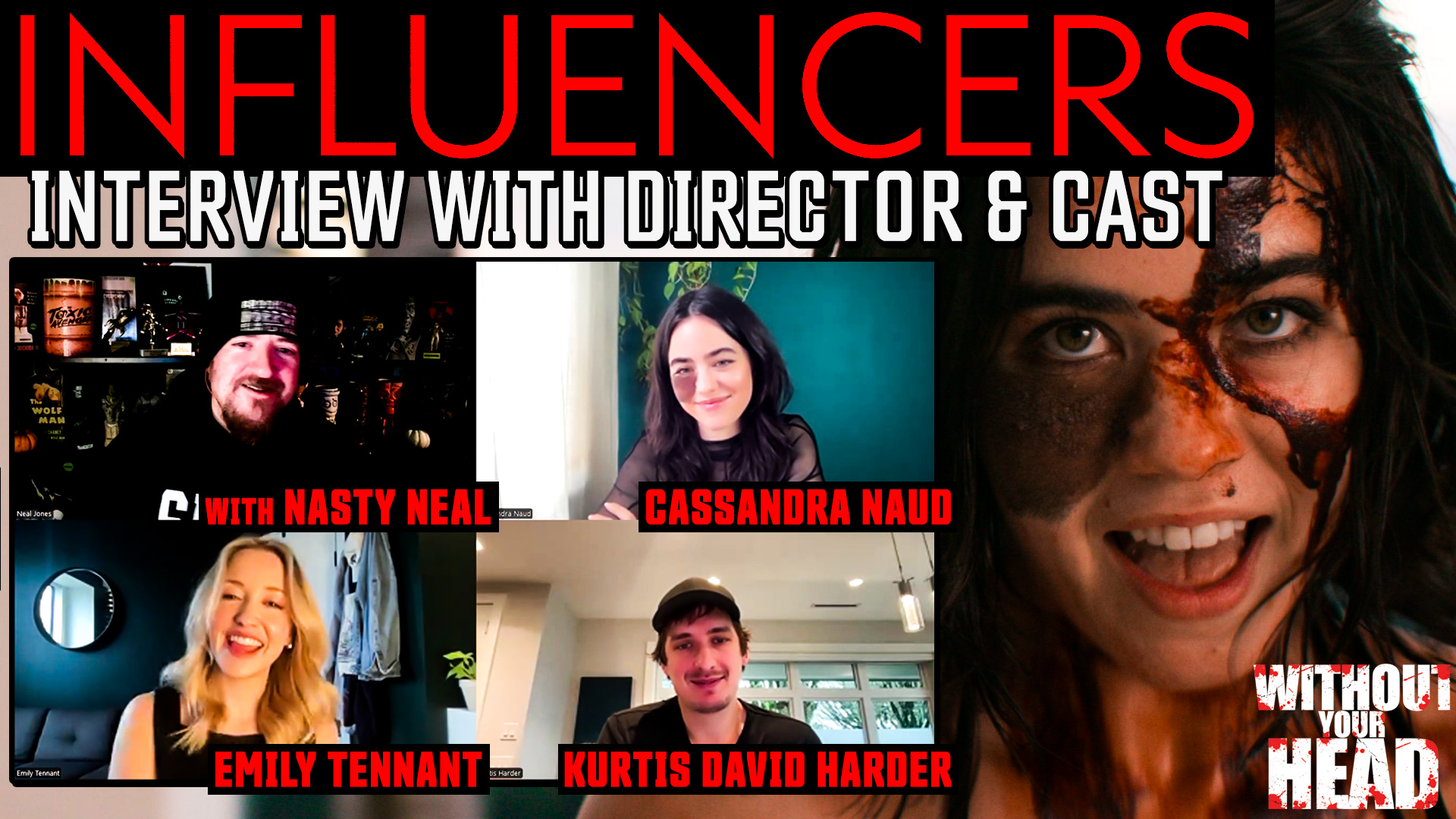 Director Kurtis David Harder, stars Cassandra Naud and Emily Tennant of the Shudder original Influencers streaming December 12th!